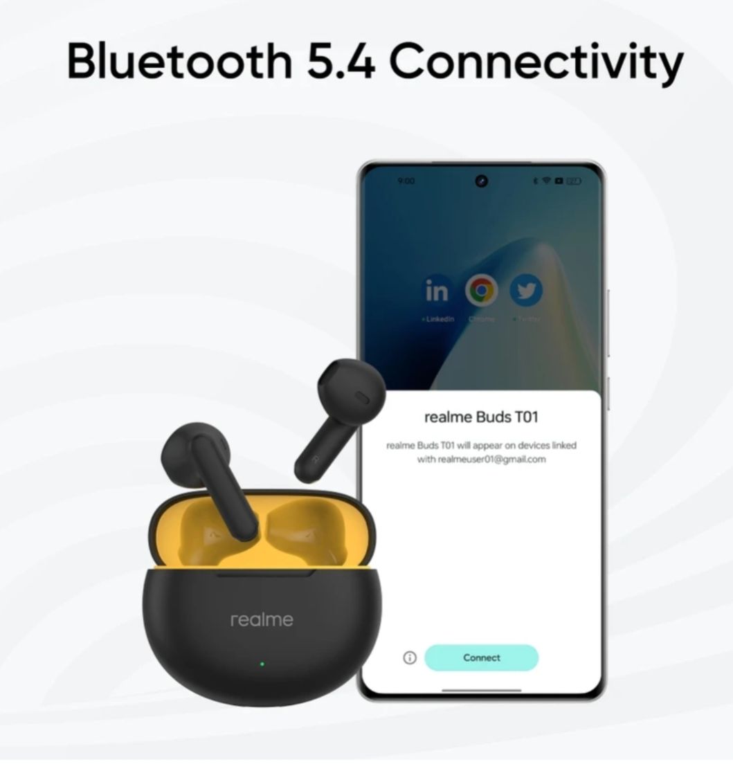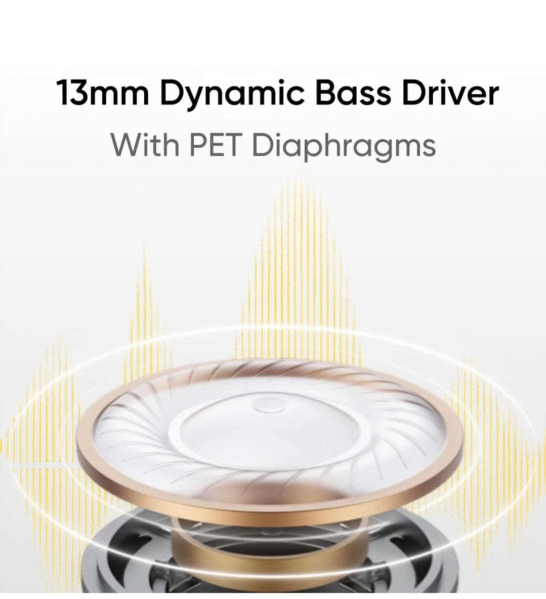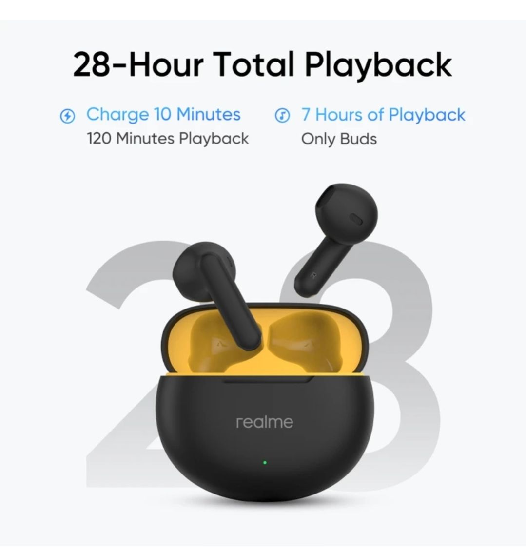 Bluetooth Version 5.4 Wireless Range 10 M 13 MM dynamic Bass Driver Realme App connectivity Upto 28 hrs playtime