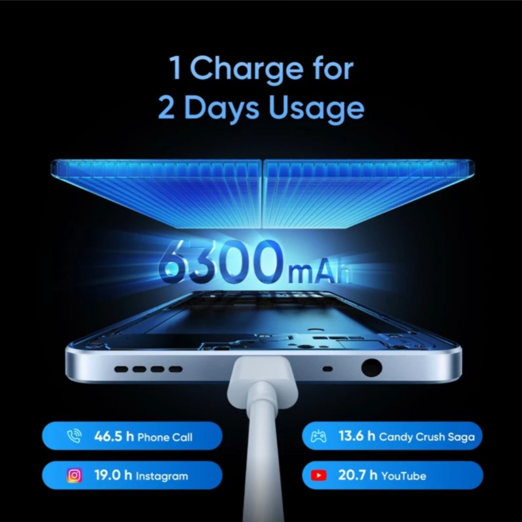 6gb Ram 128gb ROM UMS9230E | octa core processor | 1.8 Ghz 13 Mp Rear Camera 5 Mp front Camera 6.75 inch Display 6300 mah battery 90 hz Refresh rate 45 watt First charger